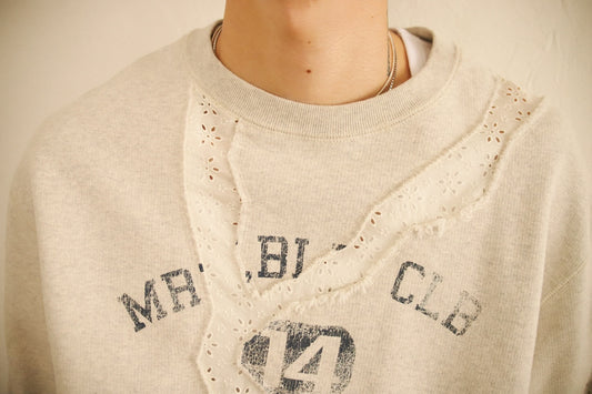 Embroidery and print design sweat shirt Gray