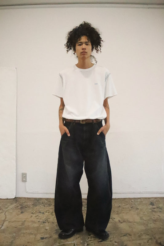 3D cutting denim pants Black
