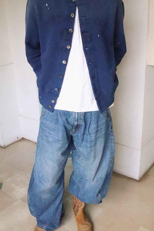Vintage-effect sweat cardigan Navy