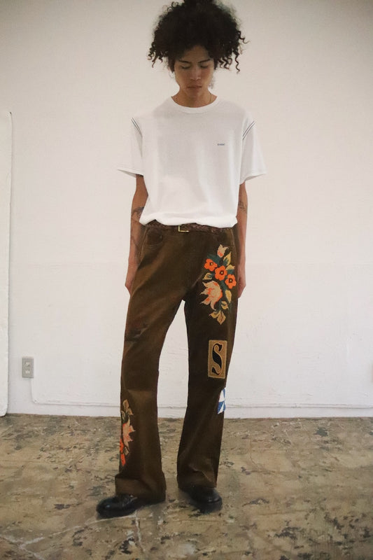 Embroidery-design pants Brown