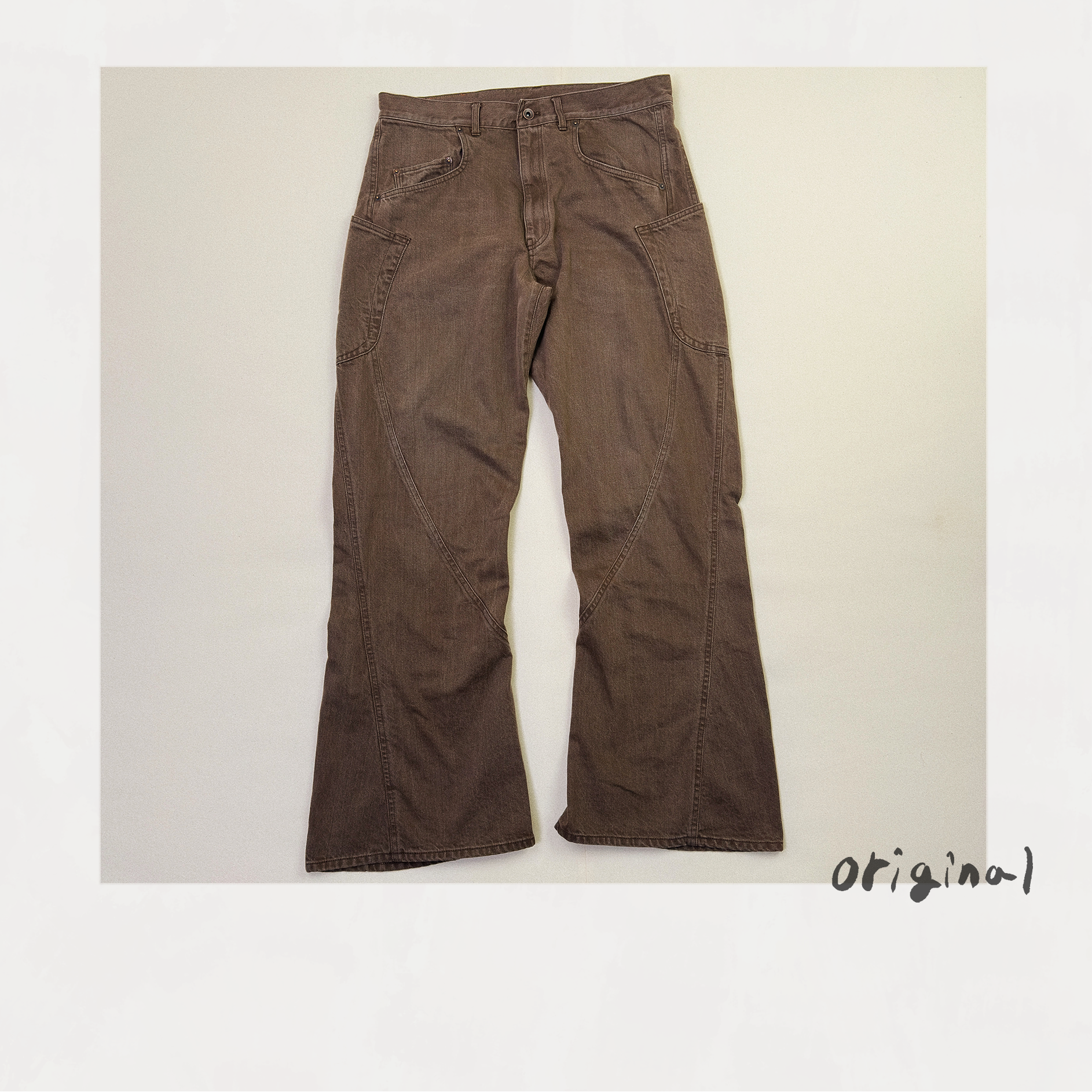 3D Cutting Denim Pants Brown