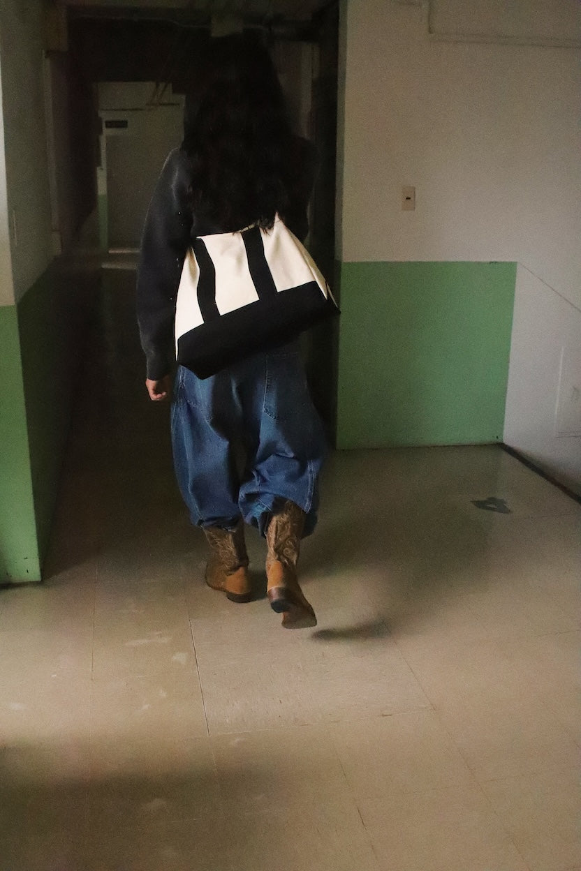 丈夫なキャンバス地を使用した変形ショルダーバック。