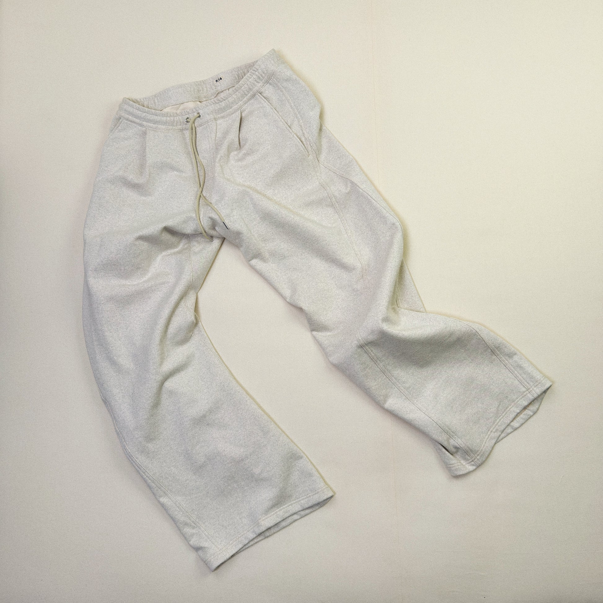 前左右にバルーンシルエットを表現するために立体裁断が施された、KHOKI定番のスウェットパンツ。