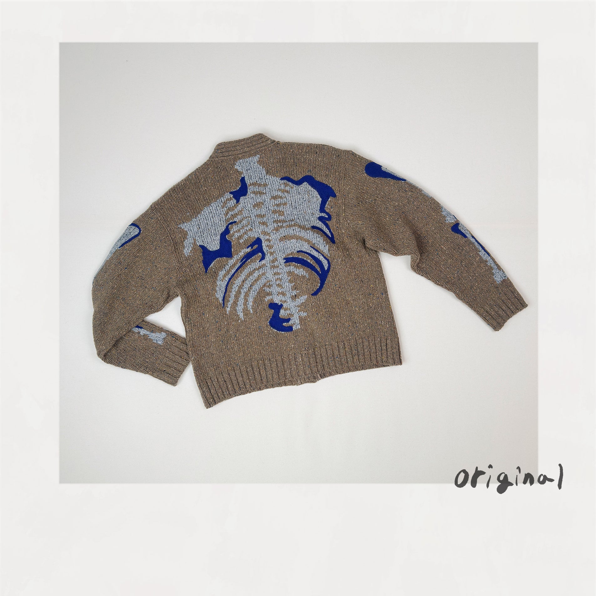 バイカーやミュージシャンに愛された死の象徴とされるスカル柄をあえて採用し、対局にある手仕事の温もりで包み込むように仕上げました。