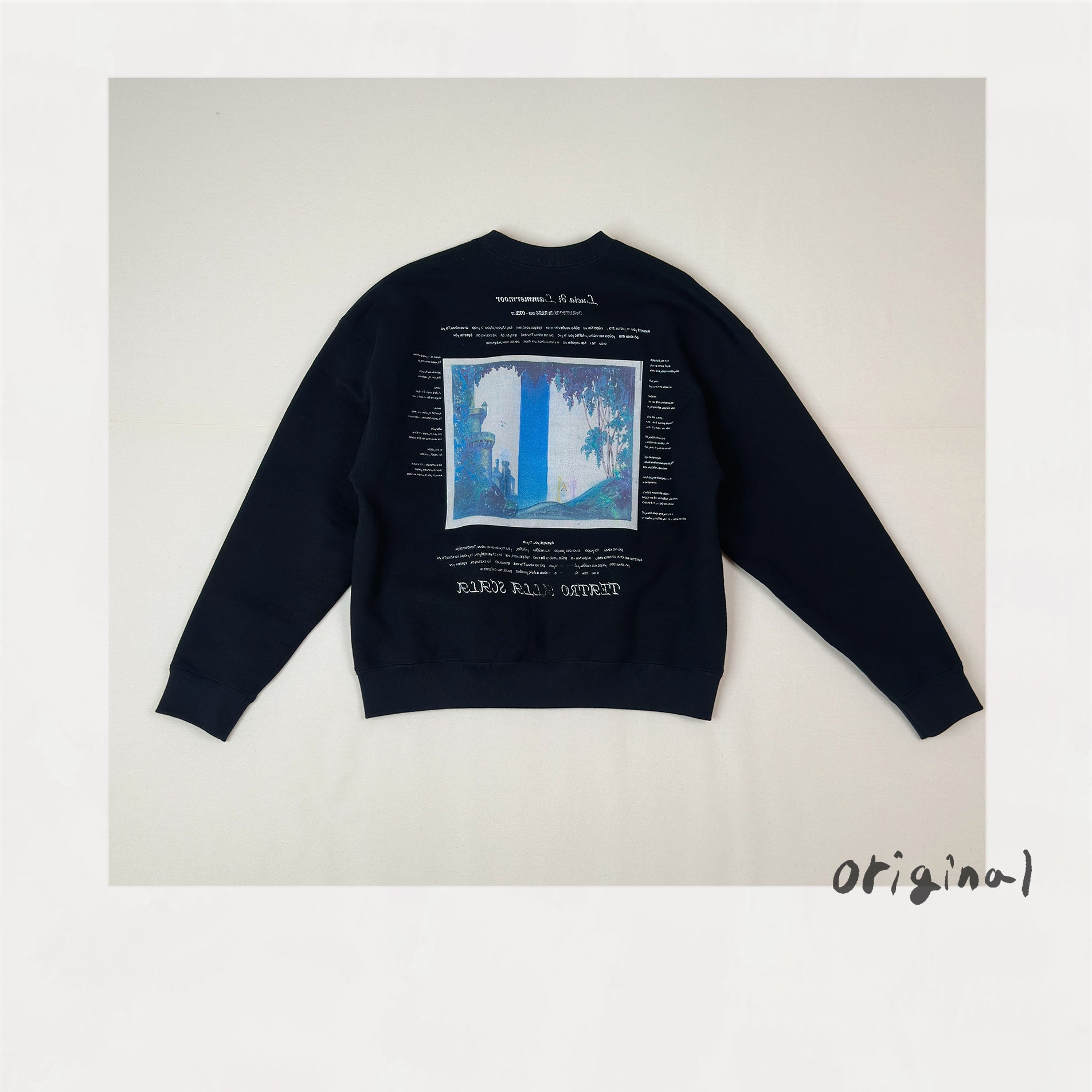 1930年代に描かれた作者不明の絵画がプリントされたプルオーバースウェット。