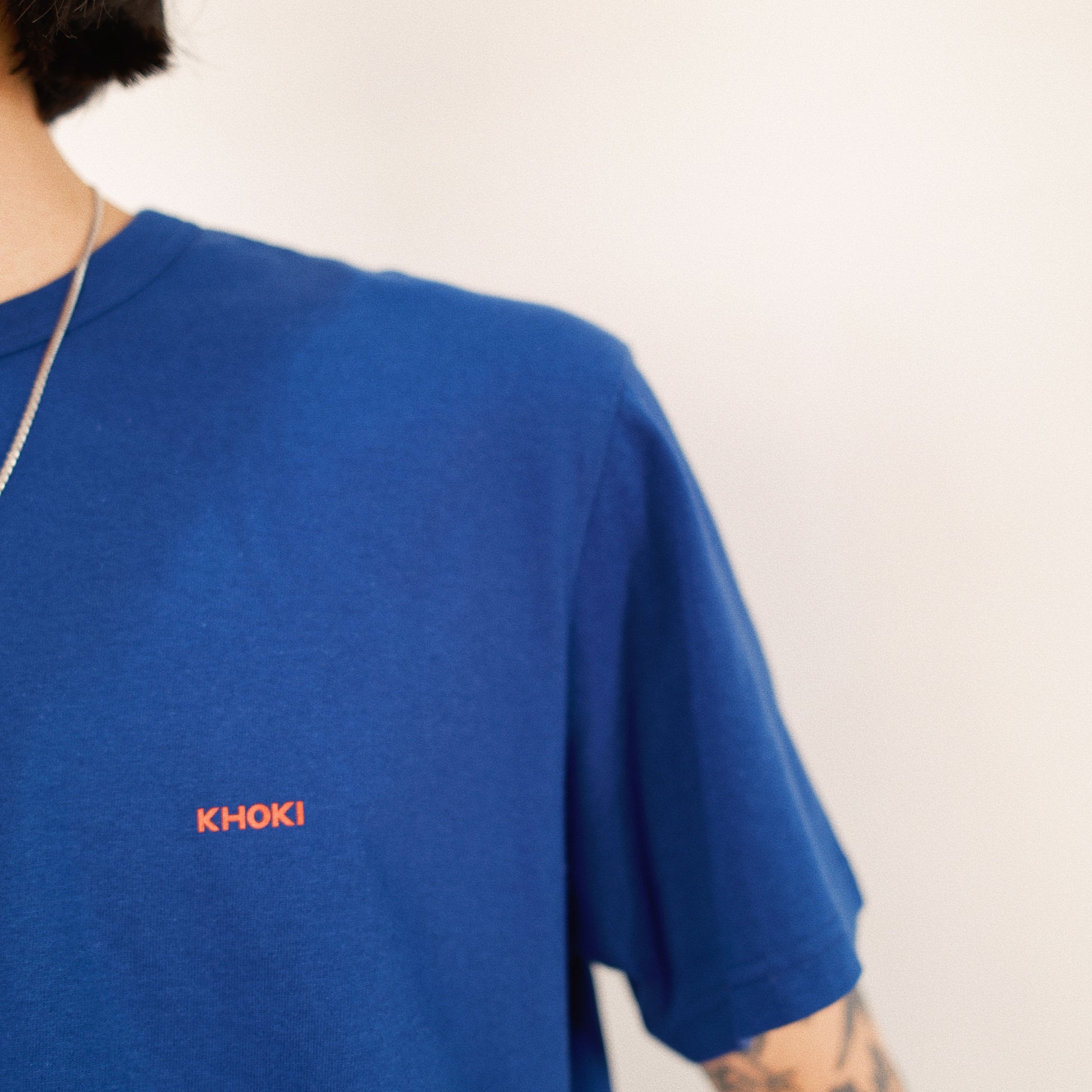 和洋折衷がハウスモチーフの枠でコラージュされたKHOKIのスタッフTシャツ。